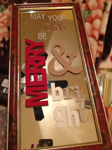 good will $2 mirror...sticker and chipboard letters, a little sanding, some red and white spray paint...